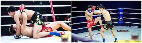 85公斤级别比赛,在双方激烈的拳脚对轰中,一名选手面部血流不止,医务人员现场为其紧急止血,确保了一场精彩对决的顺利进行。