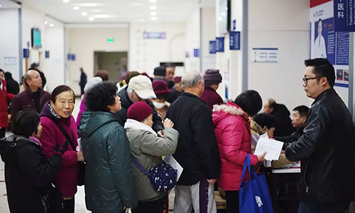 离活动正式开始尚有1个多小时,已经有不少社区居民提前在医院等候了。
