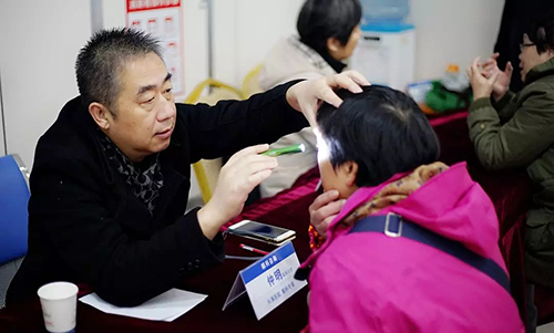 ▲眼科专家仲明为患者做检查