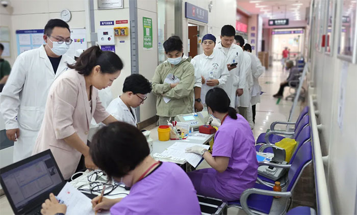 早上9点不到,从临床一线的医生、护士,到行政后勤人员,大家已早早地来到献血集合点,个个精神饱满、热情高涨。