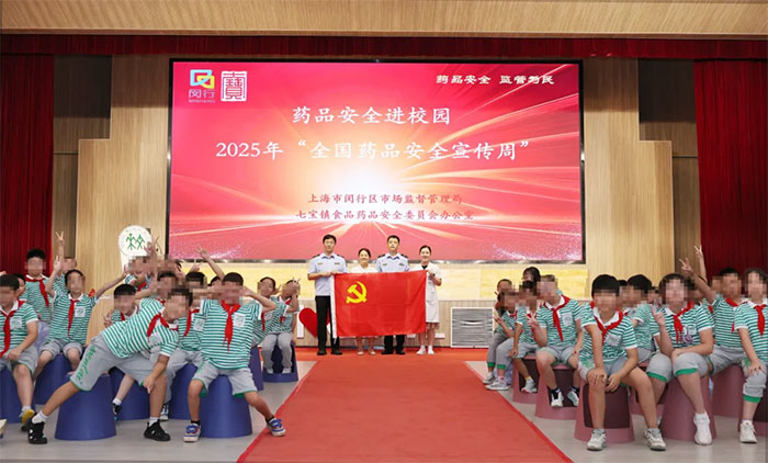 2025年9月1日至9月7日是 “全国药品安全宣传周”。为提升青少年药品安全科学素养,营造药品安全社会共治氛围,9月5日,由闵行区市场监督管理局组织,闵行区市场监督管理局七宝所牵头,会同七宝镇食药安办、上海蓝十字脑科医院及七宝文来学校等单位共同参与的药品安全进校园活动在七宝文来学校拉开帷幕。