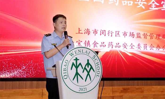 活动伊始,闵行区市场监管局七宝所刘林副所长致辞,向同学们介绍了“全国药品安全宣传周”的背景和意义,强调了“药品安全,监管为民”理念的深远内涵,阐述了药品安全在青少年健康成长中的重要性。