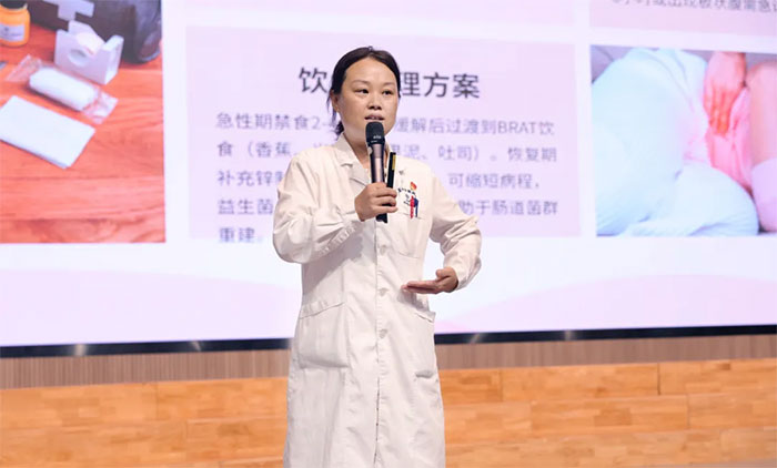 上海蓝十字脑科医院10F综合内科许培培副主任以“校园常见药品安全使用指南”为主题,从消化系统与呼吸系统常见问题处理、皮肤病症应对、心理健康与视力保护、化妆品安全使用、基础急救技能及校园意外伤害处置等七个方面系统讲解药品安全知识。
