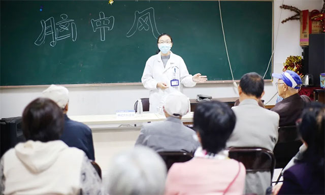 ▲ 马娜医生为居民们讲解中风防治相关知识