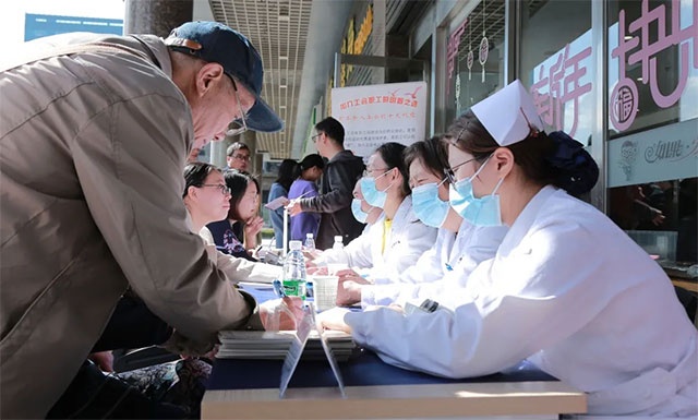 现场还为园区职工提供了测量血压服务,并给他们派发了健康宣传手册。当天活动持续一个小时,共计为80余位过往职工提供了医疗服务。