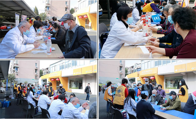 ▲ 健康活动受到居民的欢迎,现场排起长队
