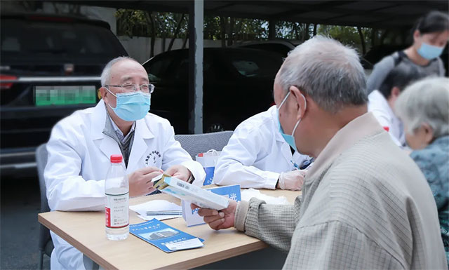 “老人家,您血糖稍微有点高,没事的。这和您的休息、饮食、用药等都有关系。您呀,连续量三天再看看。”“老人家,您的血压143/59mmHg,在边缘,要稍微小心,记得常量血压。血糖6.5mmol/L,控制得很好,继续保持。”陈子瑜博士总是耐心细致地解答每一位居民们的问题,并从血压血糖控制、日常饮食,运动等方面给予了专业的指导和建议。除此之外,他还充分发挥自己的专业擅长——中医问诊把脉,同样受到居民的欢迎。