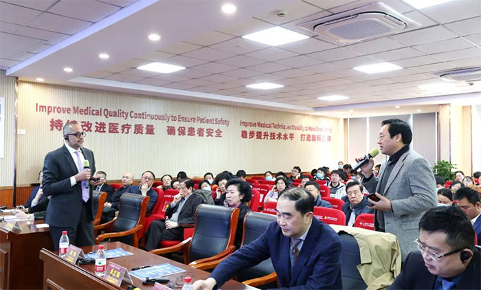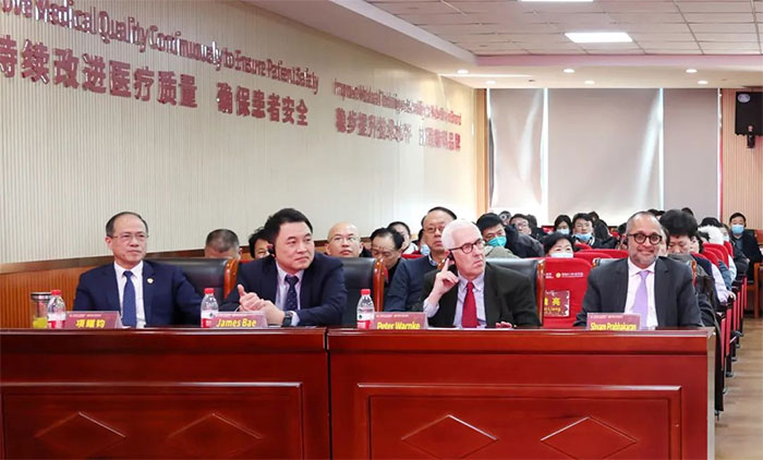 中国科学院院士、同济大学原校长裴钢,上海蓝生脑科医院投资股份有限公司(下称蓝生)董事长卓立强、总经理刘轶永、副总裁叶文琴,UCM国际项目市场部裵荣柱总监,上海天佑医院院长蔡剑飞、执行院长王强,蓝十字总经理兼书记朱敏、院长项耀钧等领导嘉宾出席会议。会上,举行了合作签约及“价值合作伙伴”授牌仪式。蓝十字神经外科主任沈建康教授,上海东方医院神经外科魏亮教授,UCM立体定向与功能神经外科Pete Warnke博士、神经科Shyam Prabhakaran博士,蓝十字神经内科王贵平博士、神经内科任明博士作专题报告。蓝十字及蓝生旗下医院医护骨干代表120余人与会。蓝十字副院长潘耀良、学术副院长于耀宇和席刚明共同主持会议。