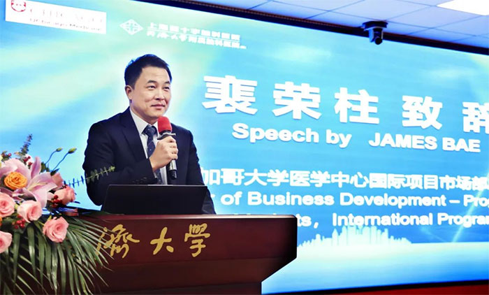 项耀钧院长致开幕词,对与会嘉宾表示热烈欢迎。项院长强调了专注脑健康、研究脑科学的必要性和重要性。他表示,芝加哥大学和同济大学作为有着百年历史的知名院校,在神经医学方面拥有领先的技术及研究,同样蓝十字虽然年轻,但志存高远,致力于创建现代化、国际化、专业化的脑病专科。他说,共同的愿景、目标、价值观及信念促成了五年前的合作,期间,步履不停,彼此加深了了解、加强了信任、增进了友谊。本次交流及签约,双方开启了深入务实的新一轮合作,相信一定会结出更丰硕的果实,为广大患者带来更多福音。最后,项耀钧院长预祝大会圆满成功。
