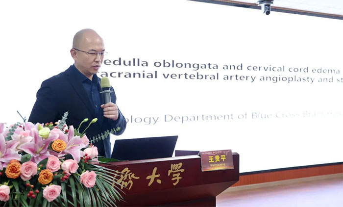 蓝十字王贵平博士以《椎动脉颅内段血管成形及支架植入术后延髓颈髓水肿》为题,分享了一例典型案例。他对患者病史、诊疗策略、临床效果随访等进行详尽展示,寻根究底,举一反三,总结经验教训,分享了五点临床思辨。