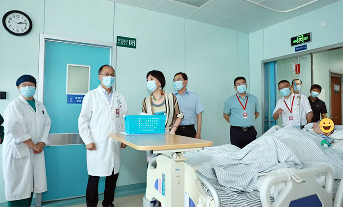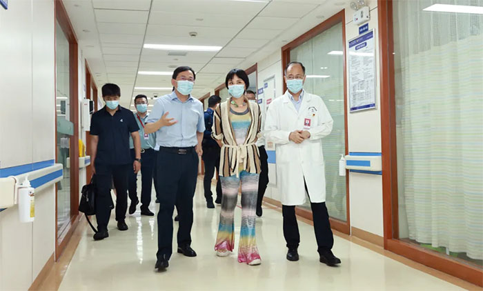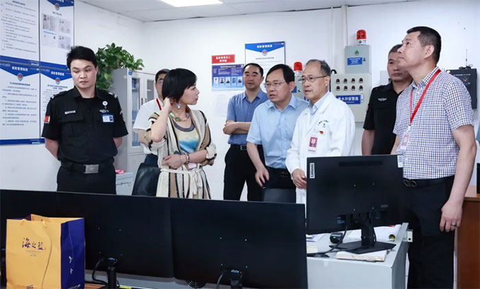 刘畅董事长一行抵达医院,先后参观了门诊大厅、手术室、9F重症医学科、8A神经内六科、7A神经内三科、7B神经内五科、康复医学科、高压氧科、影像科、(MDT)多学科专家联合会诊室、放疗科、消控室等。每到一处,刘畅董事长仔细聆听相关介绍,就医院管理、诊疗特色、技术创新、服务内涵等方面内容,与陪同领导及科室医务人员探讨交流,并不时拍照、记录。