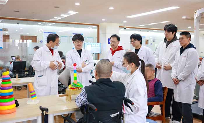 在物理治疗区,学子们观摩了针对脑卒中后偏瘫患者的肢体功能训练、平衡功能训练、肌力训练、关节活动度训练等技术,直观了解物理治疗在改善运动功能方面的作用;在作业治疗区,通过个性化作业活动设计,学生们深入体会“以功能为导向、以生活为核心”的康复理念;在言语治疗室,学生认真记录针对卒中后失语、构音障碍及吞咽障碍患者的评估、训练及干预过程,进一步认识言语康复对患者沟通能力与生活质量的积极影响。
