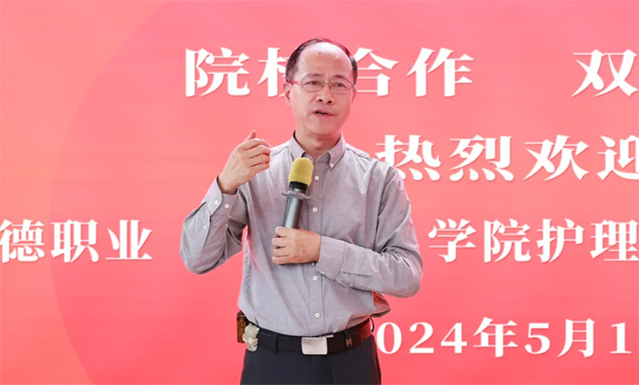 随后,院长项耀钧致辞,代表医院对邦德学院师生一行的来访表示热烈欢迎,并回顾了与邦德学院缔结合作的初衷及展开良性联动的点滴,唤起美好回忆。项院长介绍,蓝十字志存高远、脚踏实地,两次通过国际JCI认证、两次获评“三A五星”医院;坚持“三分治疗、七分护理”,以“加强专科护士培养”为重要抓手,持续提升护理质量与安全;为更好地提升临床教学基地建设水平和人才培养质量,建立了科学的专科护士培养机制,组建了优质的教师队伍,精心备课、用心研磨,并在一次次试讲、反思、优化中反复精雕细琢形成优质教学课程。
