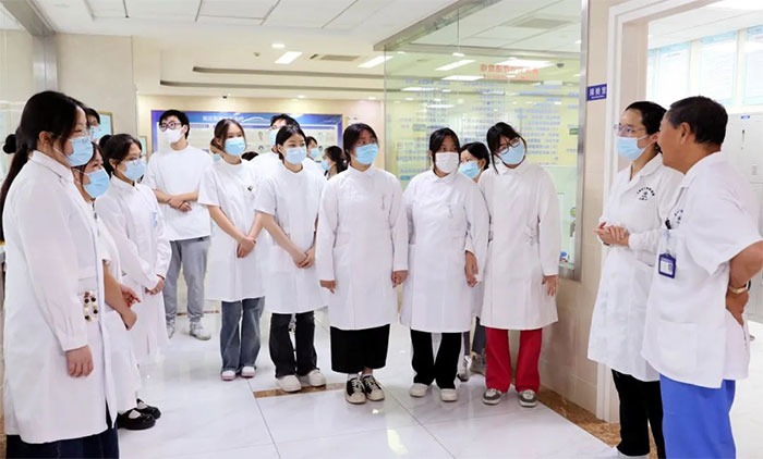 随后,在护理部张秀娟主任及护士长陈婷婷的带领下,邦德学院师生到医院重症监护病区、手术室、神经内外科病区、康复科、中医科、影像科、高压氧科等特色科室实地参观。各科主任/护士长用心接待,与邦德学院师生进行了友好交流。