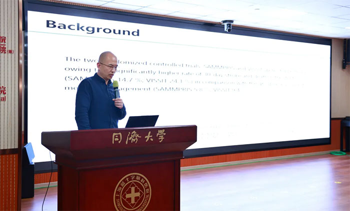 蓝十字于耀宇学术副院长进行了题为《烟雾血管病血运重建术后脑高灌注的临床处理策略》的专题报告,基于蓝十字详实的临床病例数据分析研究,深入剖析烟雾病脑血流重建术后最常见的并发症——脑高灌注的病理机制,分享临床处理策略,解读诊疗指南和专家共识。