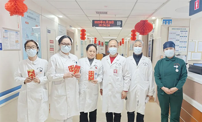 康复医学科/中医科5B病区护士长黄朵朵舍小家为大家,带领护理团队用行动诠释责任担当:“守护患者的生命安全是护士的使命,患者将生命托付给我们,我们绝不能有丝毫懈怠。”神经内六科8A病区副护士长姚永茜也表示:“我们病区收治的大多是重症患者,病情瞬息万变,春节也不例外,仍需24小时不间断密切观察和治疗。”