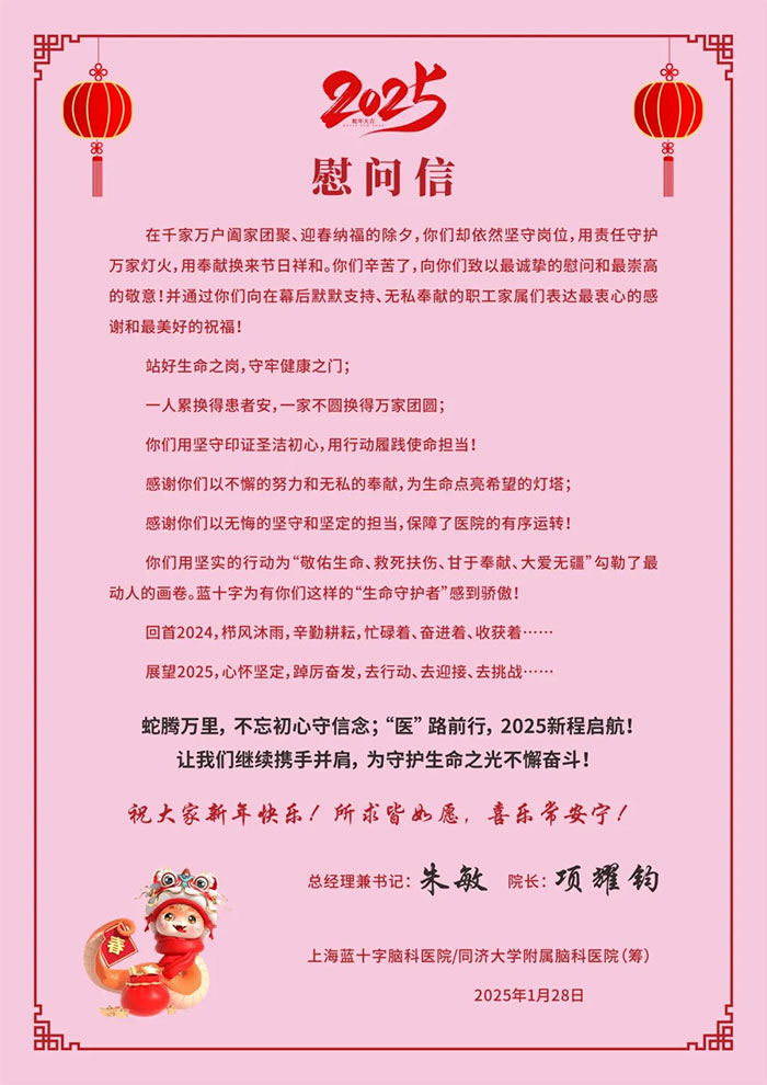 上一篇:真情传递 以心暖“新” ︱ 上海蓝十字脑科医院开展新春走访慰问活动 下一篇:新春贺词——笃行不怠绘蓝图 高质发展续华章