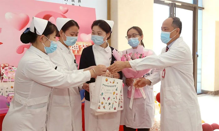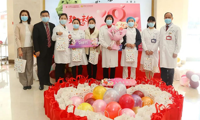 女神节!浪漫满屋,幸福满怀。总经理兼党支部书记朱敏、院长项耀钧等院领导代表医院全体男同胞,为我们的“天使”、“女神”们一一送上了衷心的祝福和精美的礼品。祝愿她们幸福健康,青春永驻!