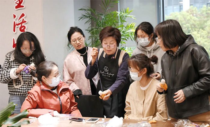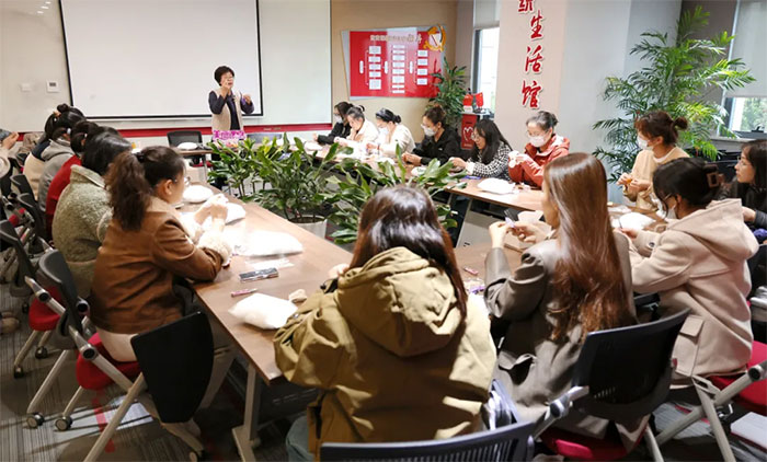 美丽课堂,你点我送。在闵行区总工会及七宝工会的关心支持下,3月27日下午,上海蓝十字脑科医院【同济大学附属蓝十字脑科医院(筹)】工会组织20名女性职工体验了一场沉浸式非遗手作活动。