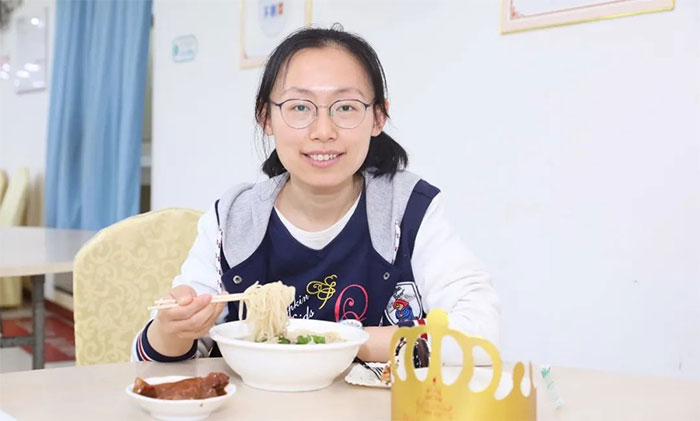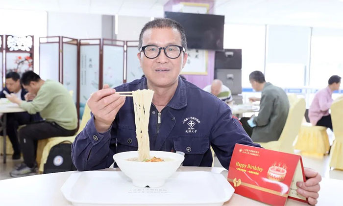 “能和这么多同仁一起庆生特别开心,这顿饭吃起来格外的香。”中医科医生赵宇兰不仅吃了满满一碗长寿面,还额外添加了一大块美味的红烧肉当“浇头”,为今后在工作岗位上更好地磨砺提升自己,更好地服务患者而加“油”鼓劲。