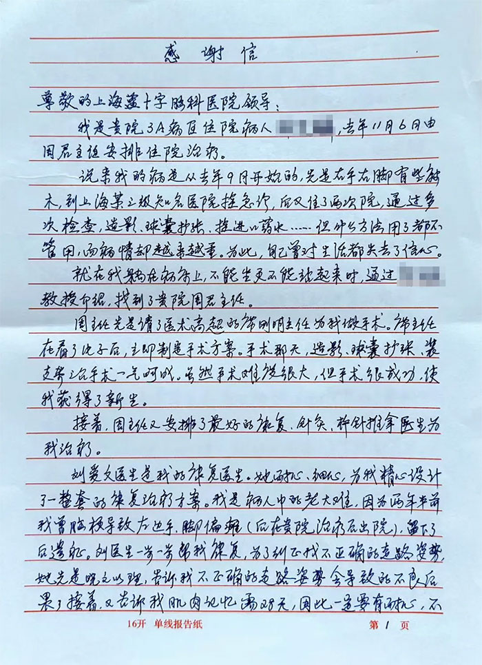 尊敬的上海蓝十字脑科医院领导: