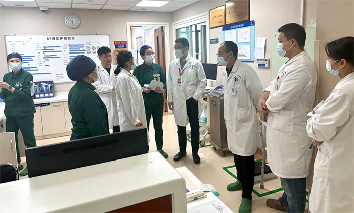 院领导班子高度重视五一假期间医院各项工作的正常运行。副院长潘耀良、周克祥,副总经理吴春芳、吴启航等轮班值守,深入各科室部门亲切慰问,并详细了解医疗运行、后勤保障等各项工作情况,确保医院平稳有序运行。