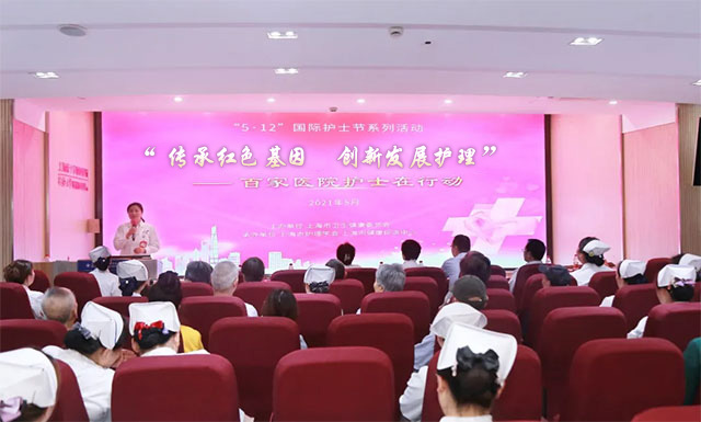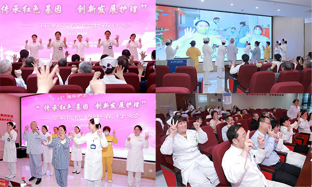为庆祝中国共产党诞辰100周年暨第110个国际护士节,激励广大护士一心向党、跟党走,立足岗位作贡献,5月8日下午,上海蓝十字脑科医院开展了“传承红色基因,创新发展护理——百家医院护士在行动”主题活动。上海蓝脑科医院投资股份有限公司医疗管理部护理督导主任朱建英、医疗管理部护理总监凌云霞,上海蓝十字脑科医院神经内科5A病区主任李振并、全体护士长、护士、患者及家属代表等80余人参加。本活动由副院长周咏梅主持。