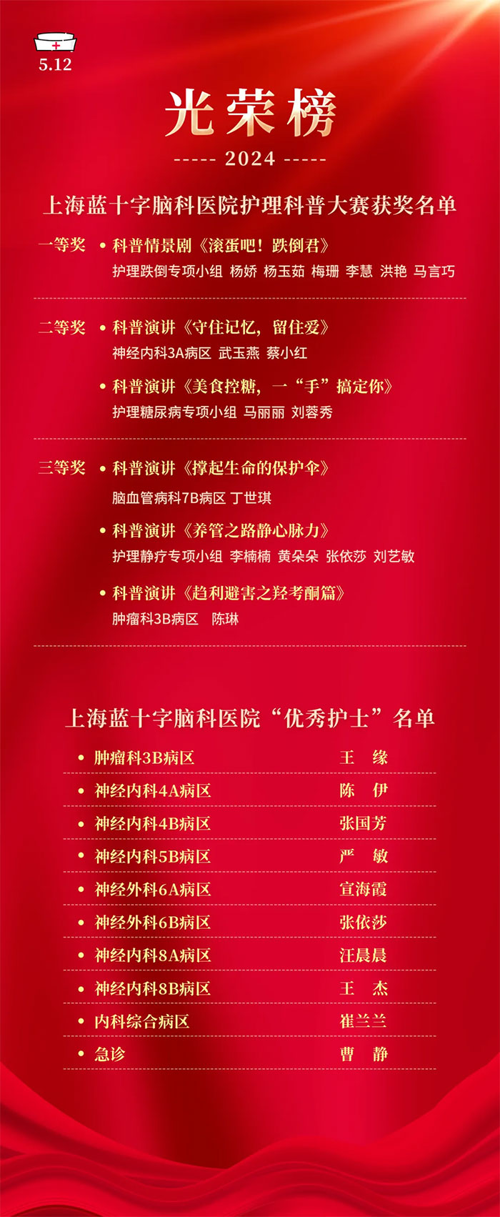 在第113个国际护士节来临之际,为继续传承弘扬南丁格尔精神,全面展现新时期护理人员爱岗敬业、积极向上的精神风貌,5月9日下午,上海蓝十字脑科医院【同济大学附属上海蓝十字脑科医院(筹)】隆重召开“5·12”国际护士节庆祝暨表彰大会。