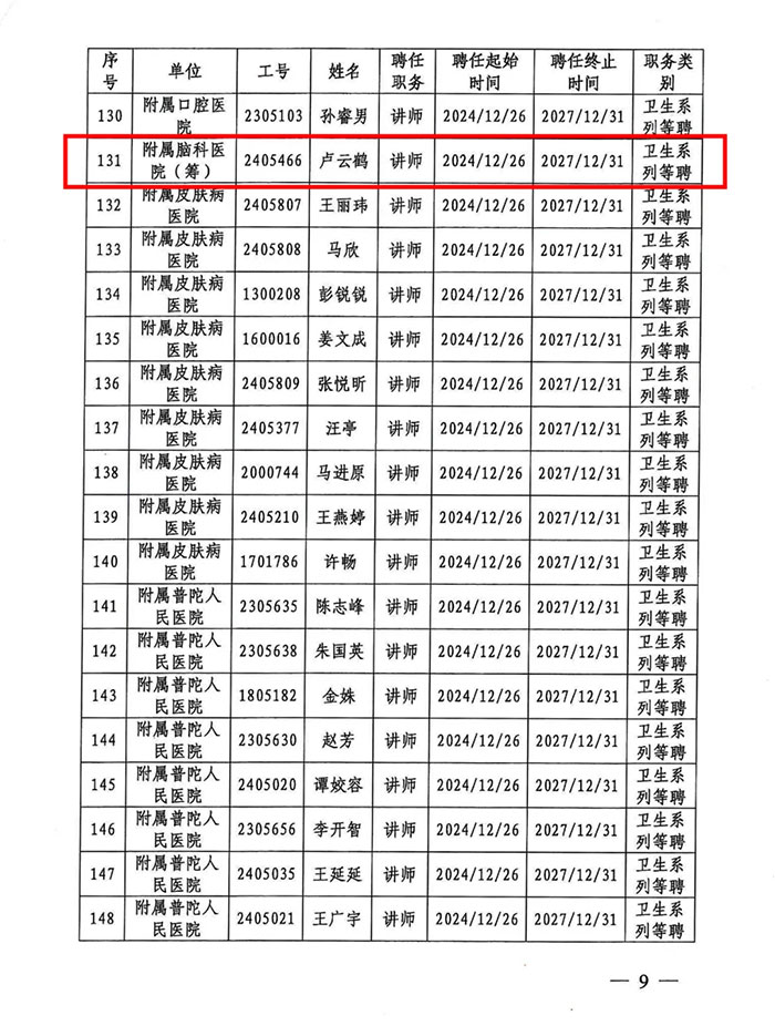 近日,上海蓝十字脑科医院【同济大学附属蓝十字脑科医院(筹)】学科人才工作再传喜讯——6B神经外二科副主任卢云鹤博士正式获聘为同济大学讲师。这一学术荣誉不仅是对卢云鹤博士在神经外科领域专业能力与学术造诣的高度认可,更标志着上海蓝十字脑科医院在“医教研”一体化发展战略中迈出关键一步,为医院学科建设与人才培养注入新活力。