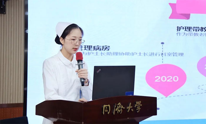 会议现场,竞聘人员个个精神抖擞、端庄秀丽。在主持人的引导下,按照竞聘序列,竞聘人员逐一从自我简介、工作经历、自身优势、岗位认知、抗疫经历,以及今后的工作思路等多个方面,向评委们作了深入的讲解和汇报。其中不乏一些创新思维和全新理念,对护理和管理工作起到了一定的启发作用。