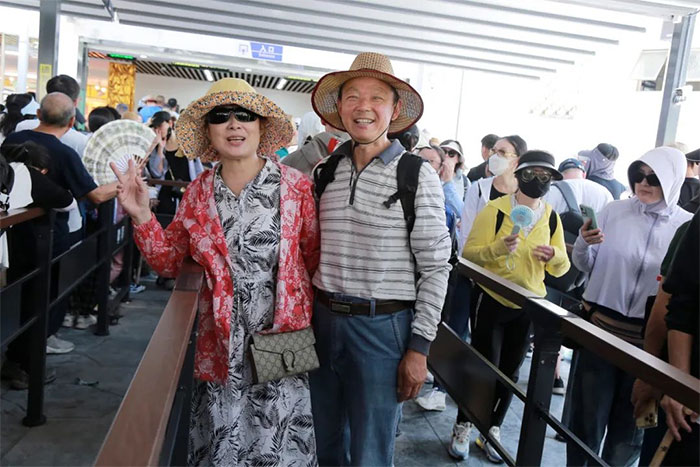 旅程的第一站,便是畅游黄山大景区。8月12日一大早,大家开始前往云谷索道登山,然后从光明顶到达迎客松。