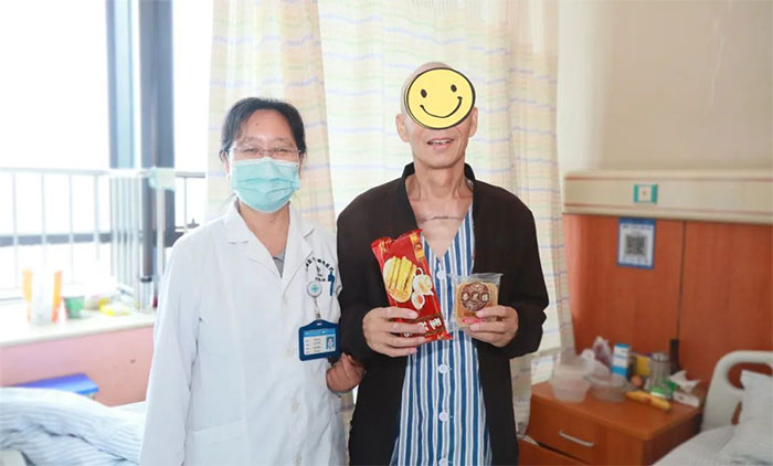 患者钱爷爷今年67岁,是一位胃癌的患者,来上海蓝十字脑科医院康复治疗一段时间,病情明显好转。看到胡主任一行过来慰问,钱爷爷拉着胡主任的手激动的说:“谢谢您,谢谢您,在您的治疗下,我的病情好多了,过节了你们还惦记着我们,你们真是太好了!”