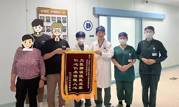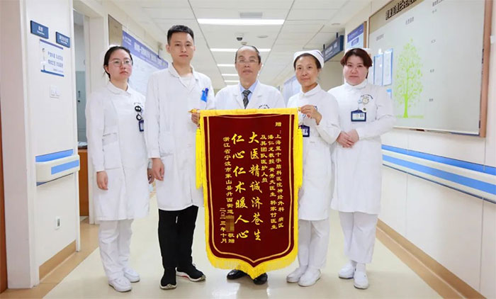 假期间,家属特意制作了一面“大医精诚德医双馨 仁心仁术情暖人心”的锦旗,亲手交到医护团队手中,对科室行之有效的救治护理和以人为本的优质服务表达由衷感谢。