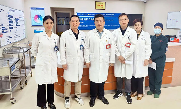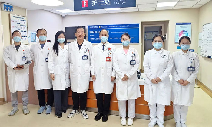 70岁的患者赵老伯(化名)为大面积脑梗死术后患者。反复遭遇肺部感染,一度出现肺栓塞险情,血氧饱和度骤降,呼吸困难等。所幸经赵枫主任,以及李鲁萍、查峰、董浩杰医生等科室骨干的精心救治和赵得梅护士长护理团队的专业护理,数度将赵老伯从生死线上拉了回来。面对焦虑的家属,神经外科重症监护病房医护人员始终坚耐心倾听,详细解答,逐渐打消了家属的顾虑,并积极配合医护工作,赵老伯的病情迅速好转,有望于近期出院。