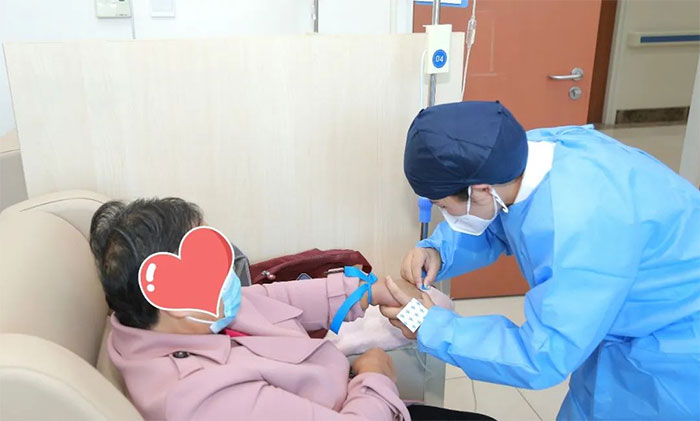 综合监护病房护理负责人张福英,缓冲病区护士刘非凡闻令而动,一个是有着26年丰富经验的老护士,一个是活力迸发的后浪“新军”。新老搭配的组合很快就在门诊输液室引发了一系列“化学变化”,不仅打破了大众眼中输液室“冷冰冰”、“闹哄哄”的刻板印象,而且让这里越来越有了“家”的温暖和舒适。