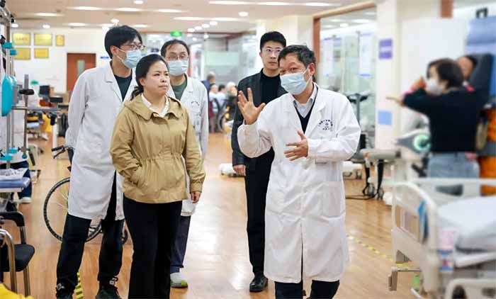 孙岩书记一行首先深入医院康复医学科进行实地走访,全方位了解康复医学科临床工作与教学环境。