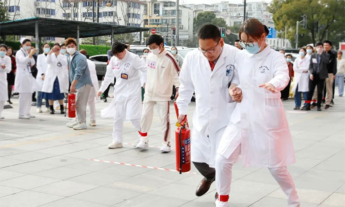 此次活动,设有“双人心肺复苏技能比拼”、“消防技能大比拼”、“拔河比赛”三个项目,集专业性、趣味性和竞技性于一体。每队十人,共有六支队伍参与。