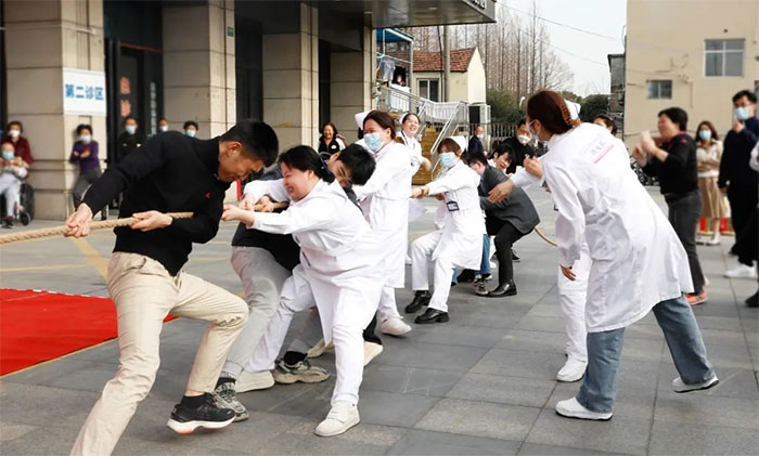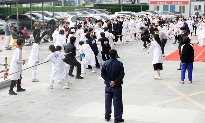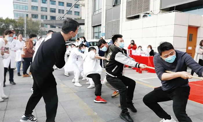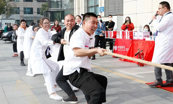 “拔河比赛”采用三局两胜淘汰制。随着裁判的一声哨响,参赛队员个个凝神聚气、摩拳擦掌,拉开“弓字步”,身体后仰,重心后压,拼尽全力拉拽绳索。一根麻绳连接了团结和友爱,演绎了奋斗和拼搏,展现出了队伍团结向上、永不言败的风采。胜负难分、僵持不下之际,队员们更是个个咬紧牙关,奋战到底,在现场不断掀起阵阵高潮。经过一轮轮激烈角逐,最终,铁牛队以“绝对力量优势”拔得头筹。