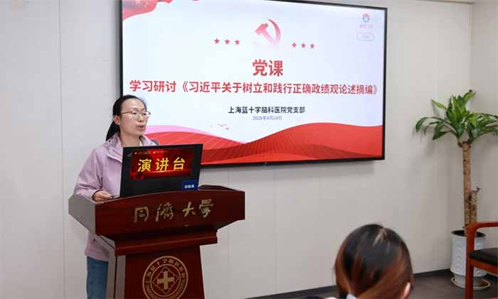为进一步把稳思想之舵、筑牢信仰之基,强化党员干部宗旨意识,端正发展观念,4月24日下午,上海蓝十字脑科医院党支部召开党员大会,围绕学习“中共中央关于制定国民经济和社会发展第十五个五年规划的建议”及“树立和践行正确政绩观”两项核心议程展开。