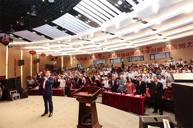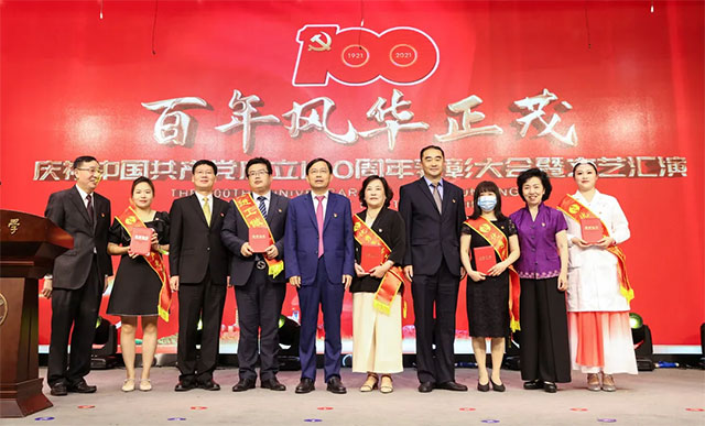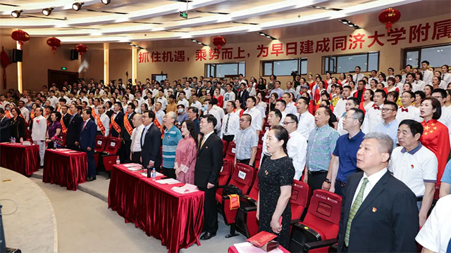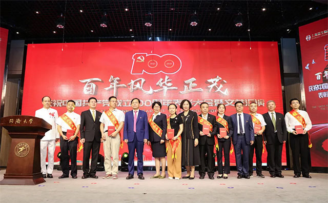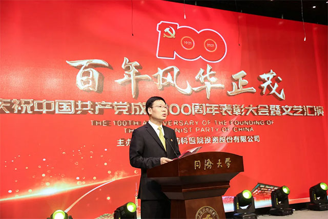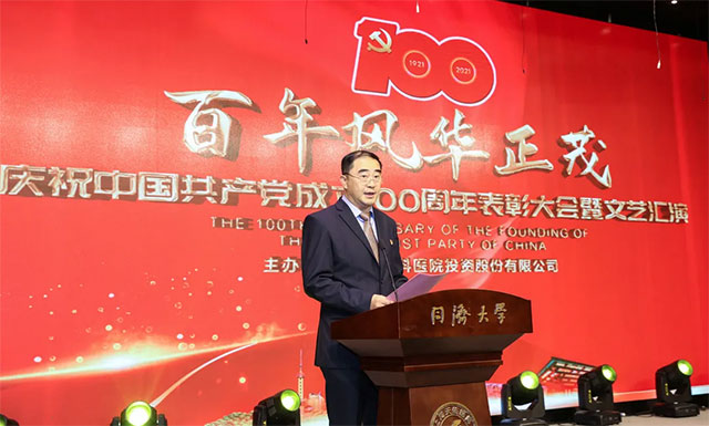 胸怀千秋伟业,百年恰是风华正茂。中国共产党百年华诞前夕,6月29日下午,公司在同济大学附属天佑医院国际会议厅,隆重举办庆祝中国共产党成立100周年表彰大会暨文艺汇演,回顾党的辉煌历程,讴歌党的丰功伟绩,表彰党建先进典型,感悟党的宝贵经验启示。公司董事长卓立强同志等公司领导、机关干部,医院、子公司班子成员,科室主任和护士长代表,外联项目领导、储备人才和“两优一先”表彰对象共330余人出席。上海市卫生健康委员会新闻宣传处处长艾晓金、上海新华传媒连锁有限公司党委书记钮也仿、前金盾艺术团导演丁勇斌、上海市越剧院国家一级演员邓华蔚莅临会议指导。公司常务副总裁刘诗强同志主持表彰大会。