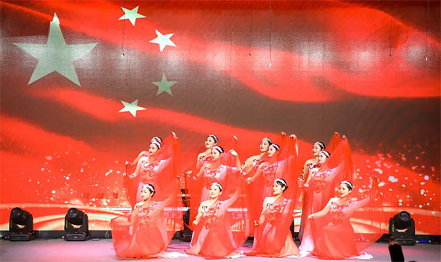 中国共产党的诞生是开天辟地的大事变,人民有了主心骨;中华人民共和国的成立是改天换地的里程碑,人民有了新希望。第一个上场的节目是舞蹈《五星红旗》。