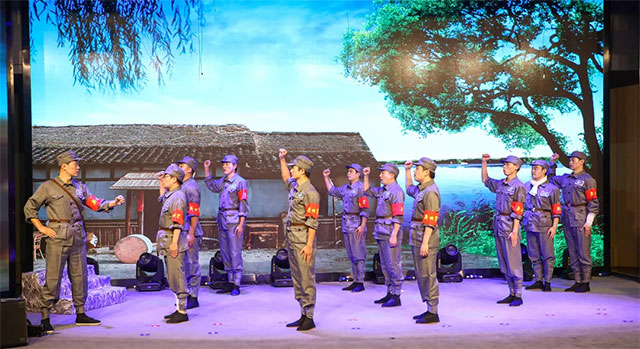 现代京剧《要学那泰山顶上一青松》再现了新四军战士在芦苇荡中与日寇顽强周旋的场景,将革命者的青松气质和蓝生脑科人的坚忍品格表现得淋漓尽致。