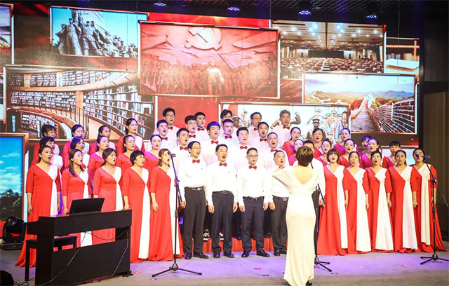 中国共产党指引我们走上胜利的道路,给予我们幸福的生活。合唱《唱支山歌给党听》《团结就是力量》,向党献上最诚挚的祝福,表达了蓝生脑科人同心向党、团结奋进的心声。