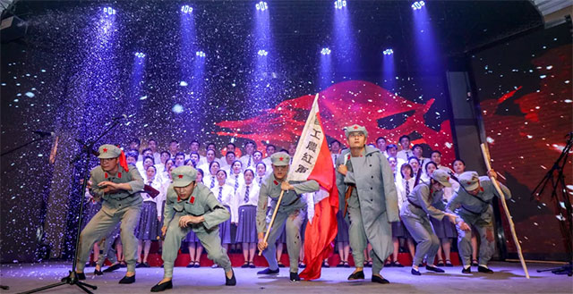 合唱《过雪山草地》展现了红军长征的艰辛历程,歌颂了红军将士革命理想高于天的坚定信仰;《我和我的祖国》把血脉同根、根根相连唱成歌,无论走到哪里都流出一首赞歌。