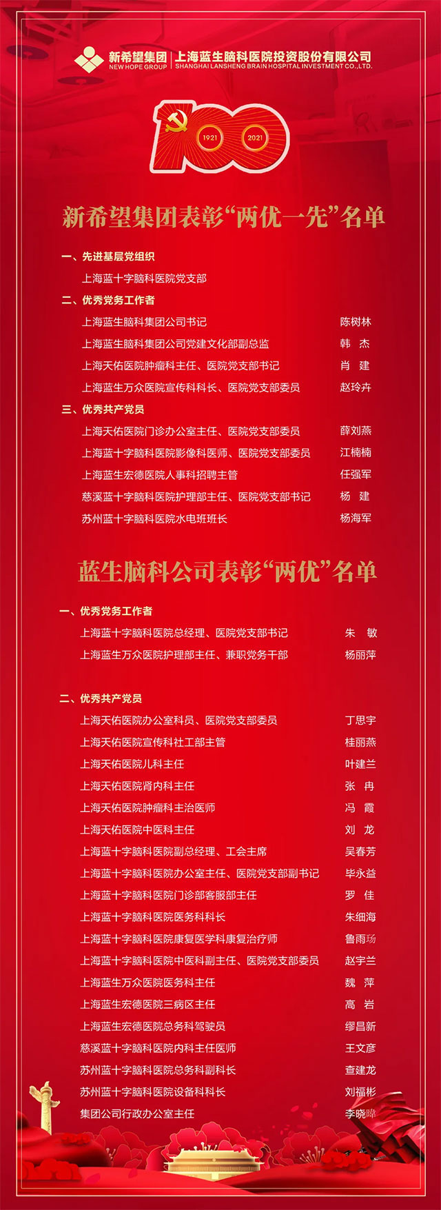 公司书记陈树林同志致辞。他指出,公司以表彰先进和文艺汇演的形式,回顾党的光辉历程,讴歌党的丰功伟绩,激发员工爱党、信党、为党的深厚情感,抒发投身蓝生脑科发展事业、实现宏伟目标的豪情壮志。他表示,公司诞生、发展、壮大于改革开放新时期,要由衷感党恩、听党话、跟党走,从党的百年奋斗历程和宝贵经验中汲取继续前进的智慧和力量,以党建促发展,以发展求卓越,朝着蓝生脑科战略愿景和奋斗目标不懈奋斗,为助力健康中国作出应有贡献。他强调,要以科学理论把握时势,坚持与时俱进,开辟新路;要以为民造福担当责任,坚持德信为本、精医于民;要以优秀干部保证发展,坚持大业之本,首在英才;要以百折不挠战胜挑战,坚持坚忍不拔,攻坚克难;要以组织体系加强领导,坚持科学治理,提高效能;要以自我革命激发活力,坚持克服问题,永葆先进。