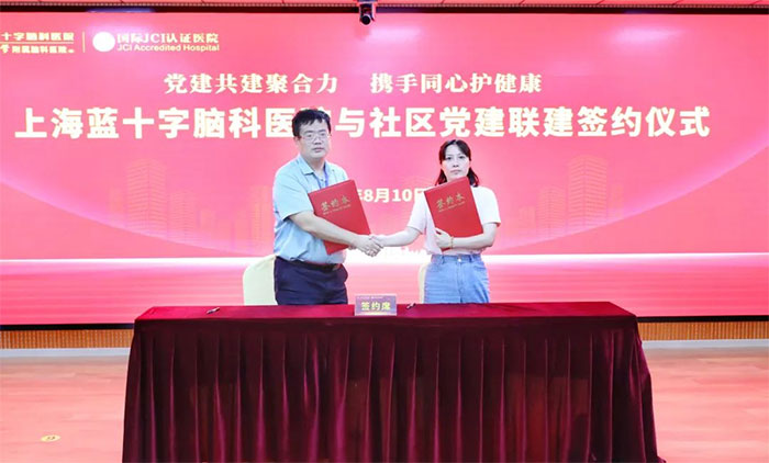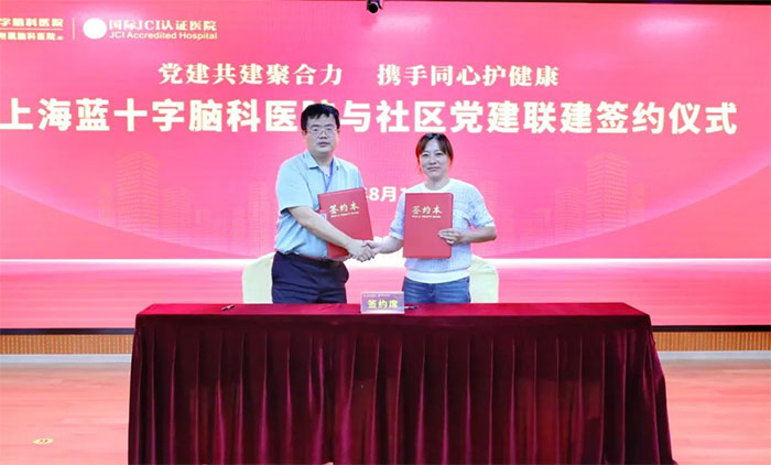 为深入贯彻习近平新时代中国特色社会主义思想和党的二十大精神,加强党组织联建共建促发展工作,着力提升社区居民生活幸福指数,8月10日下午,上海蓝十字脑科医院党支部与闵行区七宝镇七宝村党总支等七家社区党组织党建联建签约仪式在医院大会议室举行。双方达成共识,将更多优质惠民的医疗卫生服务资源引进社区,让社区居民在家门口就能享受到便捷优质的医疗服务。