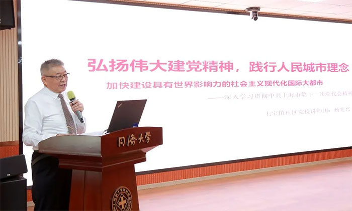 中国共产党上海市第十二次代表大会确立了上海未来发展的目标愿景和行动纲领。“用奋斗创造新奇迹,以实干展现新气象!”杨兆兴老师激情澎湃地谈道。党代会的胜利召开,也必将对今后一个时期上海推动高质量发展、创造高品质生活、实现高效能治理、奋力开创各项事业发展产生重大深远的影响,同时也为引领上海加快建设成——具有世界影响力的社会主义现代化国际大都市续写下新的篇章。