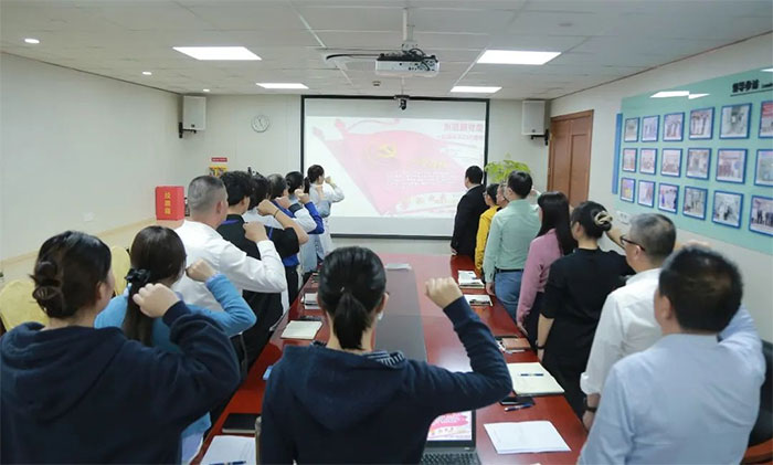 会议最后,在朱敏书记的带领下,全体党员高举右拳,重温入党誓词。铿锵的誓言,豪壮的激情,在党旗下汇聚成河,奔流在每一个党员的心田。坚持两个“维护”,不忘初心,牢记使命,在党的领导下,踔厉奋发,砥砺前行。