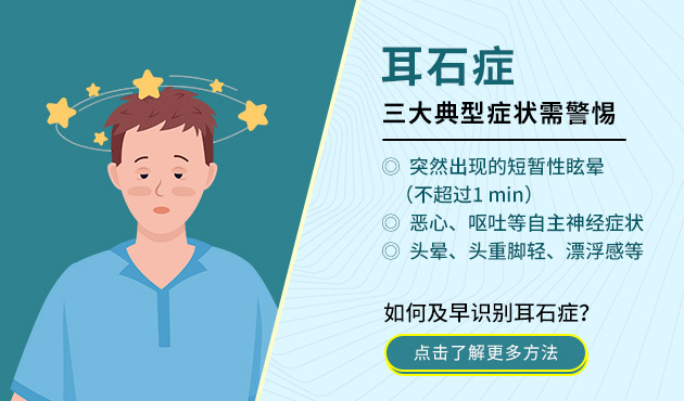 耳石症又称良性阵发性位置性眩晕(BPPV),是一种相对于重力方向的头位变化所诱发的、以反复发作的短暂性眩晕和特征性眼球震颤为表现的外周前庭疾病。各年龄均可发病,通常40岁以后高发,且发病率随年龄增长呈逐渐上升趋势。那么耳石症如何及早识别,有哪些典型症状呢?