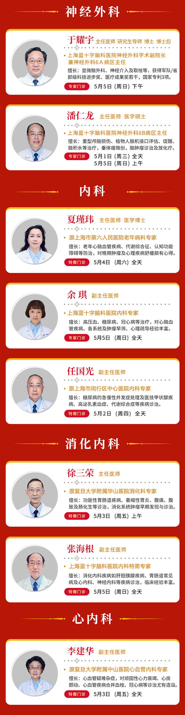 为更好满足广大市民朋友的就医需求,根据国务院有关法定假日安排的规定,结合上海蓝十字脑科医院实际情况,2024年“五一”劳动节假期(5月1日—5日)期间医院门、急诊照常开诊。具体排班公告如下: